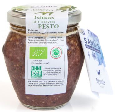 Einzigartiges Genusserlebnis für Antipasti-Liebhaber: Unser SANNIS Bio-Olivenpesto überzeugt mit einer unverwechselbaren Geschmackskomposition aus naturbelassenen dunklen Bio-Oliven, extra-nativem SANNIS Bio-Leinöl und den erlesenen SANNIS Bio-Haselnüssen. Die vollmundige Gourmetrezeptur stammt aus der Haubenküche des Rössle Braz.