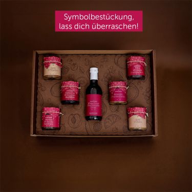 Lass dich überraschen - sieben süße und pikante Feinkostprodukte im edlen Karton