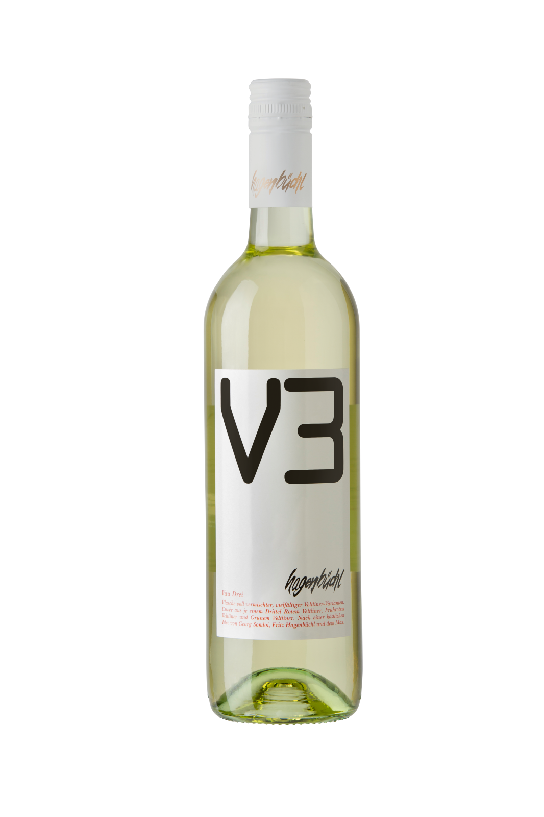 Zur Etikette: Vlasche voll vermischter, vielfältiger Veltliner-Varianten: Nach einer köstlichen Idee von Georg Somloi, Max Pöppel und Fritz Hagenbüchl.