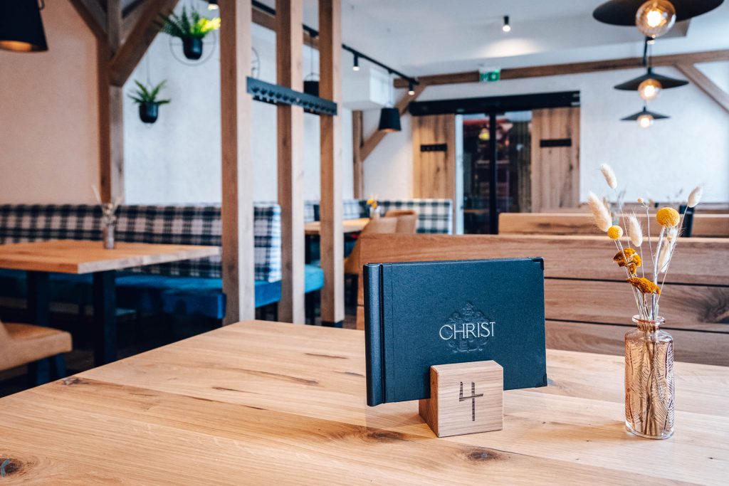 Beim Heurigen Christ wird Gastfreundschaft großgeschrieben. Ein stilvoller Mix aus Naturstein, Holz und Glas empfängt die Gäste.
