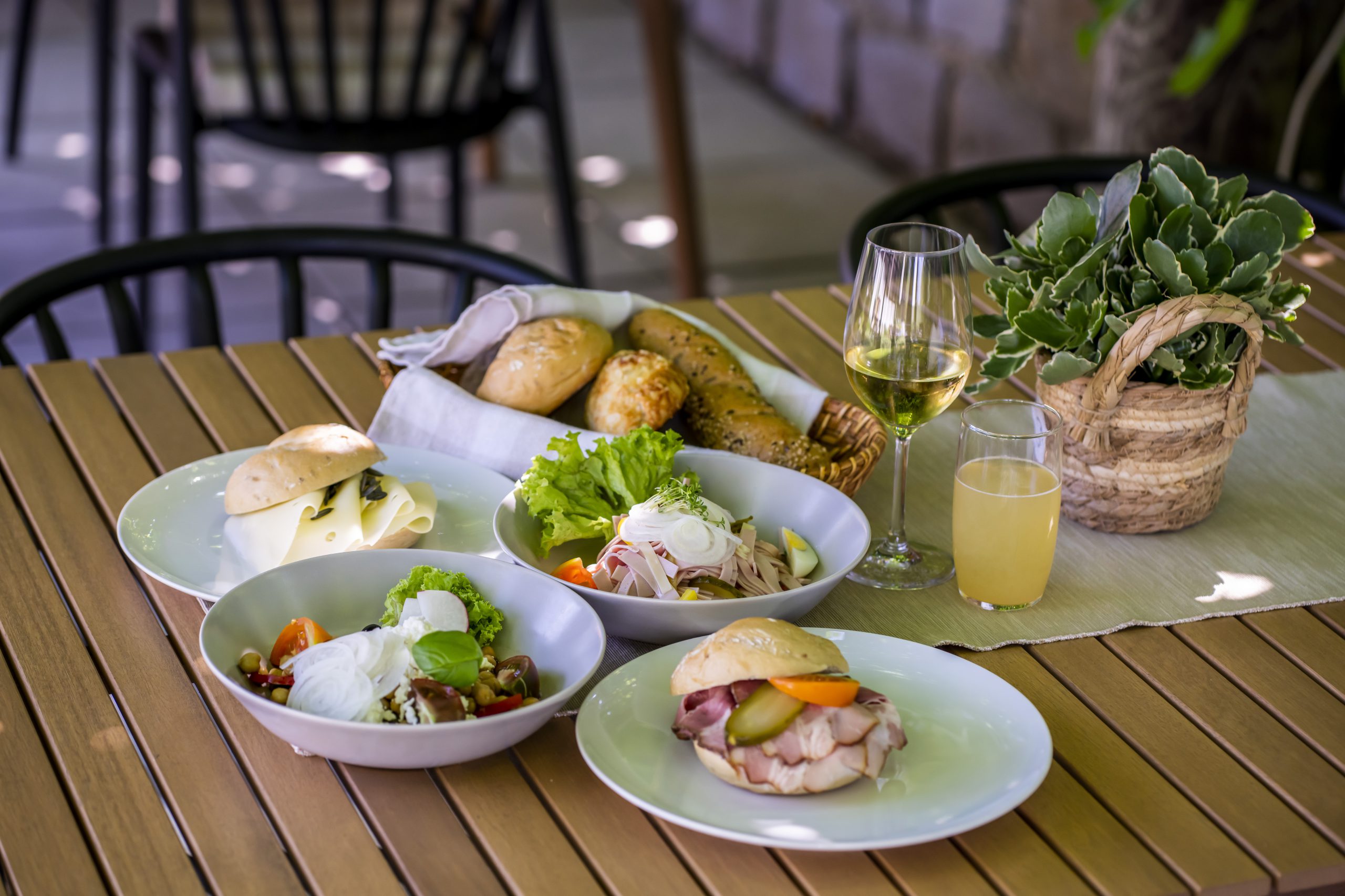 Der stimmungsvolle Gastgarten mit einen schönen Blick auf Langenlois lädt zum Verweilen und Genießen ein – und sollte es etwas kühler sein, haben wir ein paar gemütliche Plätze im Heurigen.